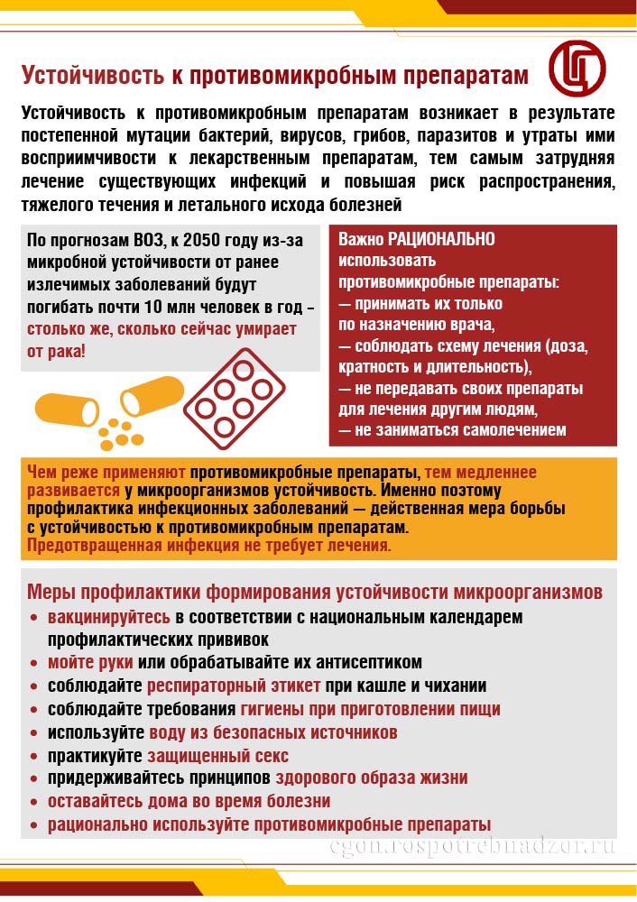 Антимикробная резистентность стала серьезным вызовом, лишая эффективности лекарственные препараты и увеличивая риск тяжелых и летальных исходов инфекций. Причины этого явления часто связаны с неправильными действиями человека, такими как самолечение и нерациональное использование антимикробных препаратов. Даже при современном многообразии антибиотиков, их необходимо использовать строго по назначению врача, соблюдая схемы лечения, и избегая самолечения. Решение проблемы антимикробной резистентности зависит от ответственного отношения к собственному здоровью, включая вакцинацию, соблюдение гигиенических правил и правильное использование антимикробных препаратов.